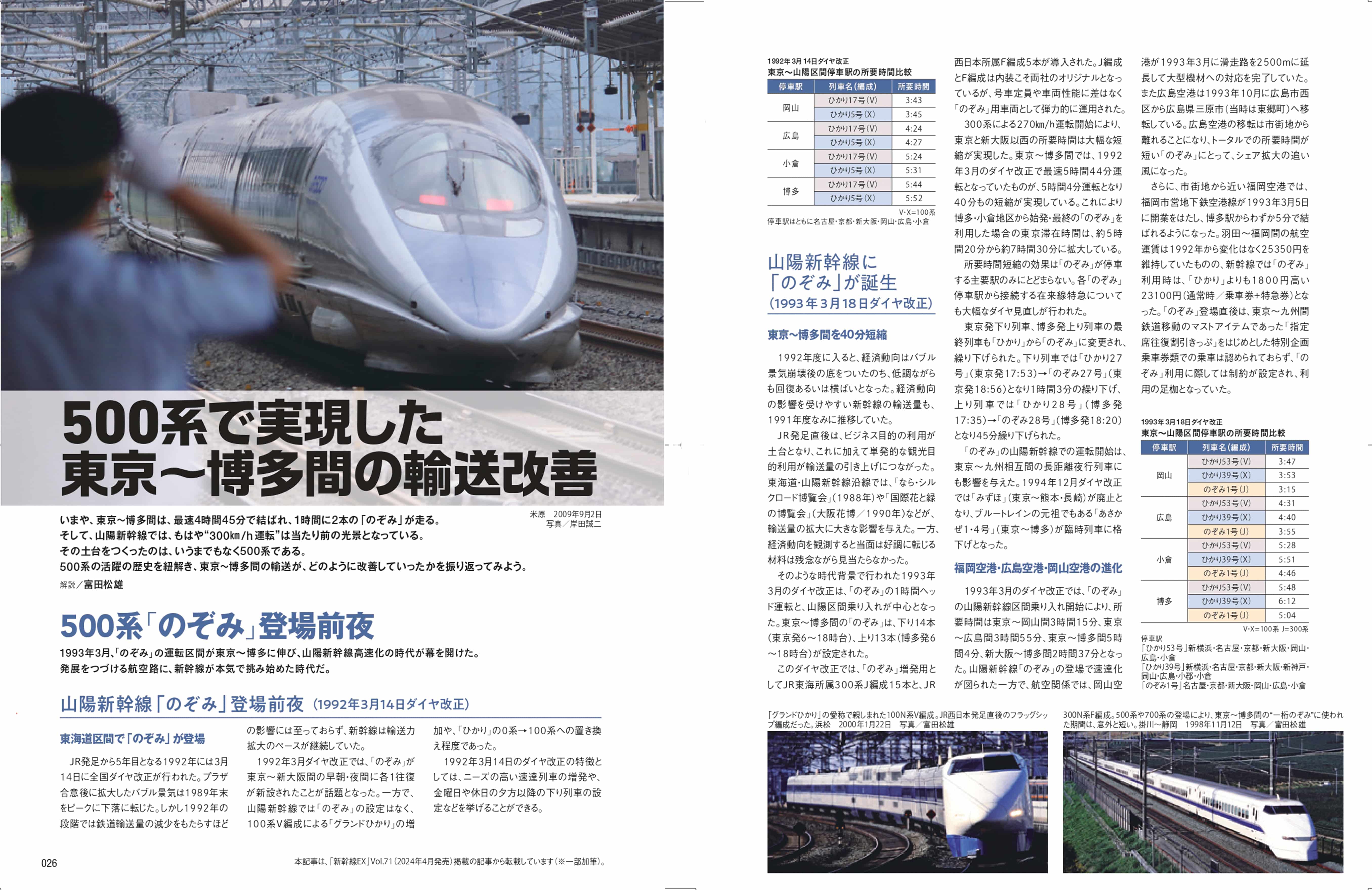 本書では、高速鉄道専門誌「新幹線EX」で徹底取材した記事をもとに、500系新幹線と山陽新幹線の高速化について、掘り下げていく。