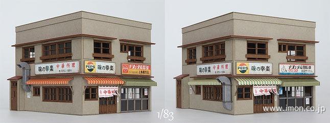 1階に店舗が入った、モルタル仕上げの2軒長屋キット。