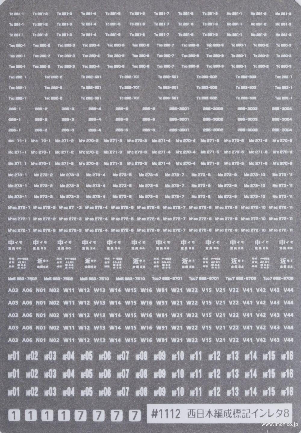 1112 西日本編成標記インレタ8