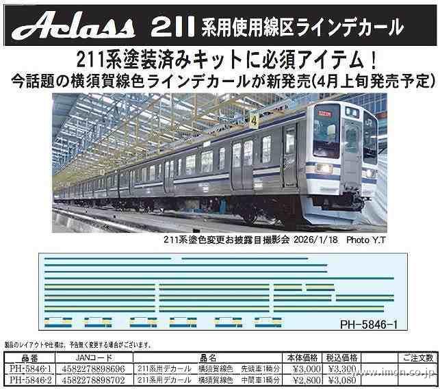 PH5846-1 211系デカール 横須賀色 先頭車1輌分